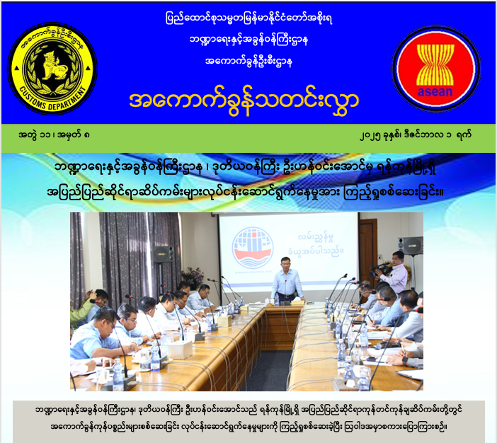 Continue Readingအကောက်ခွန်သတင်းလွှာ အတွဲ (၁၁) အမှတ် (၇)